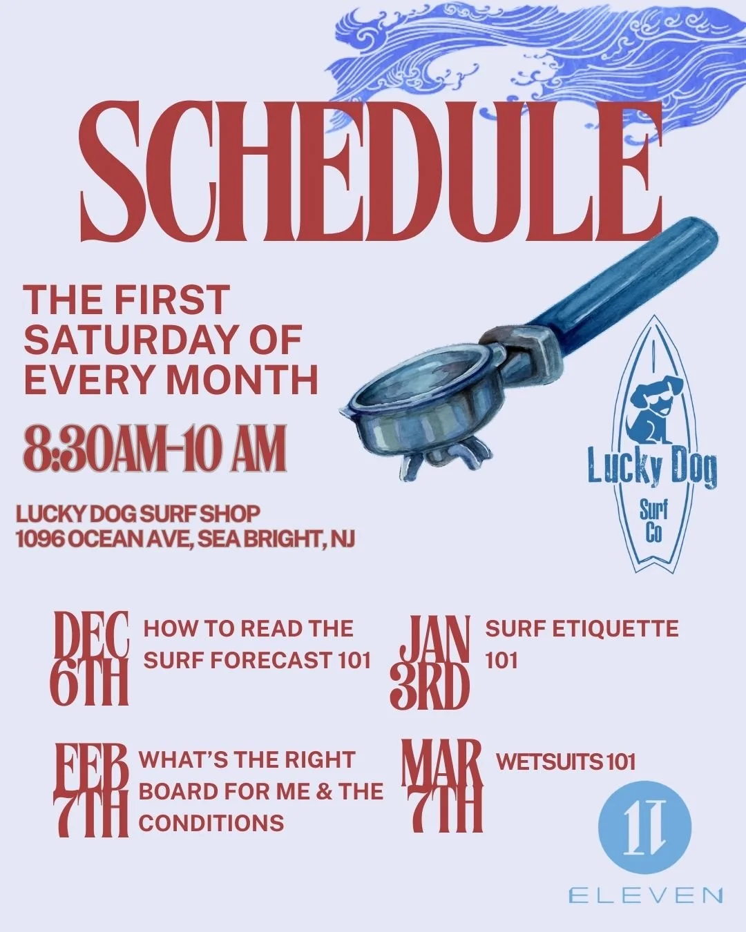 Join us at Lucky Dog Surf Shop for a laid-back morning of coffee from Cafe Eleven, conversation, and wave-ready wisdom. Sip a fresh brew while our experienced team breaks down how to choose the perfect board size for your style, skill level, and the day’s conditions. Whether you’re new to surfing or looking to fine-tune your quiver, you’ll walk away with practical tips, personalized insights, and the confidence to make your next session your best one yet. Come hang out, learn something new, and connect with fellow surfers—it’s the perfect way to start the day. 🌊☕️